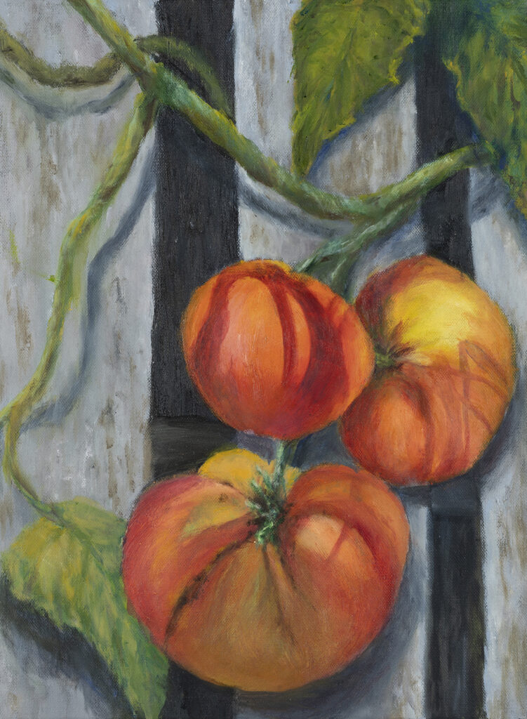 Inspired by… the anticipation of tasting the tomatoes on the vine when they ripen, just waiting for the perfect moment to be picketed.